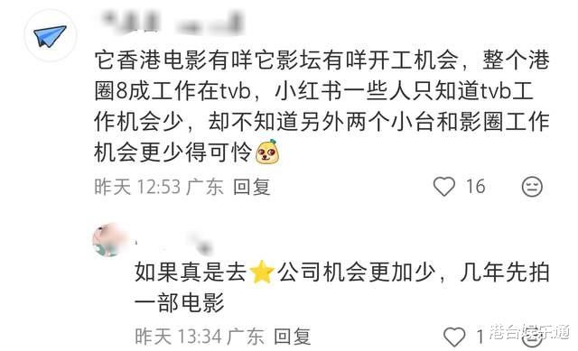 有网友留言称,蔡思贝在TVB长期没剧拍是事实,离巢外闯既是主动求变,也是无奈选择,但香港电影圈近年产量锐减,很多电影大咖都没戏拍,她一个因绯闻导致形象不佳且毫无身份背景的电视演员,哪怕签约新公司,恐怕也没什么发展机会。
