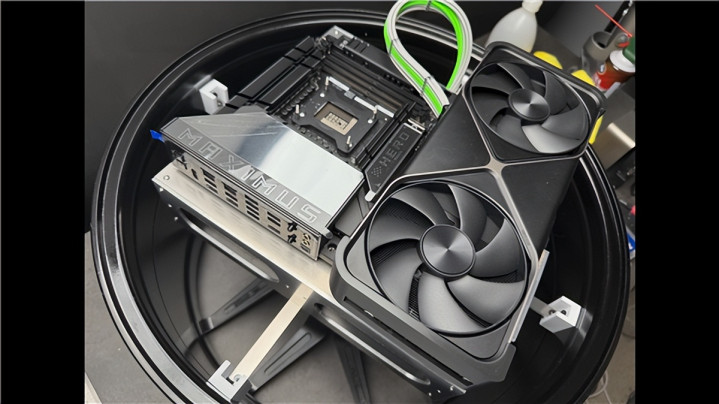 为了进一步提升视觉效果,Justin使用了ROG Maximus Z890 Hero背插式主板,这样所有的线缆都可以通过托架内部的通道,而主板组件本身则是唯一暴露在外的部分。